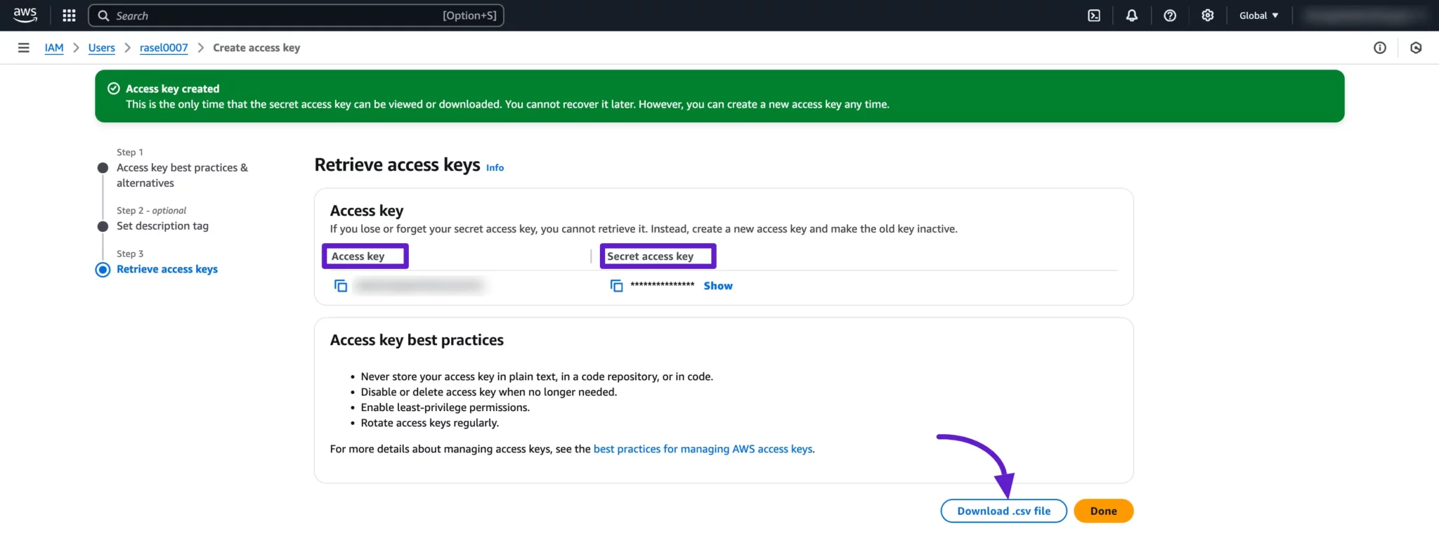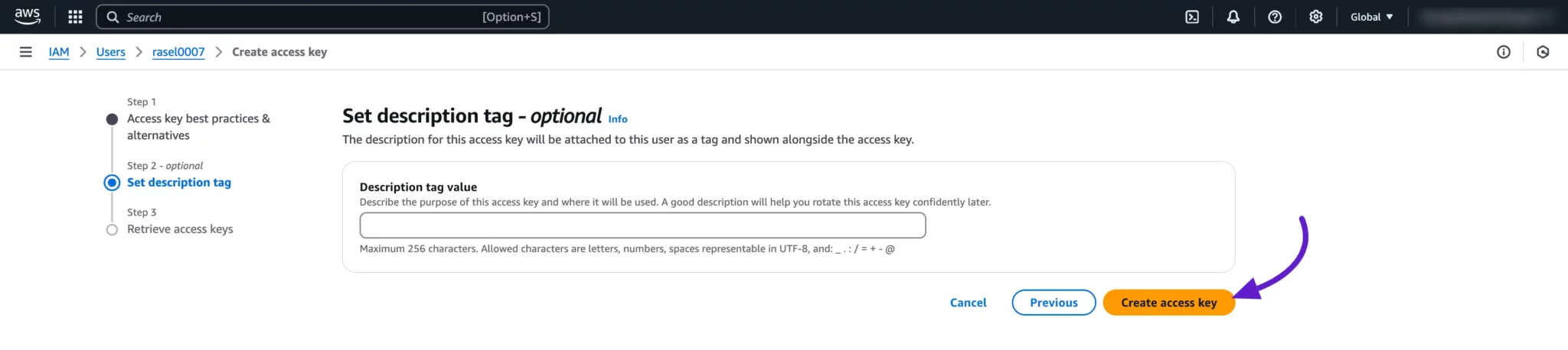 You can simply skip this step and click on the Create Access Key button to generate the access key.